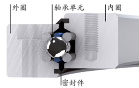 軸承總成由一個(gè)Franke軸承元件、一個(gè)外圈、一個(gè)內圈(可根據要求帶齒)以及唇形密封組成。根據軸承總成的不同應用,軸承元件被設計為四點(diǎn)接觸軸承、向心或者推力軸承。如需用于特殊用途,還可提供不同結構的雙列向心推力軸承。